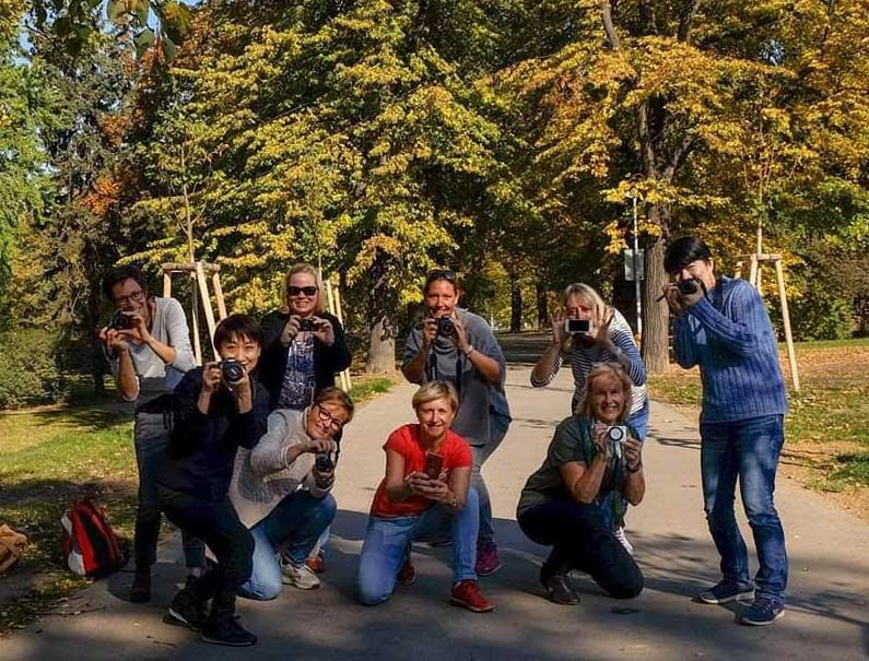 The Photography group meets twice a month. Meetings take place mainly outside. We explore the city through the viewfinder. It is amazing how often we are astonished by the fact that the familiar place suddenly looks different, many interesting details come to our attention, and the local spirit shows it’s hidden face. We follow assignments, learn some technicalities about cameras and a different way of taking photos. Indoor meetings are popular as well because while drinking a lovely cup of coffee or tea we are displaying our photos. Ten different photographers and one object to be photographed can lead to endless discussions. No one is professional, all of us are enthusiastic amateurs.
